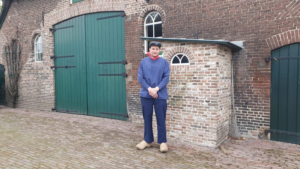 Hier zien we het toilet van de Boerderij. De inrichting van dit aparte hokje, met in de deur een hartvormig kijkgaatje, lijkt nauwelijks op de luxe, verwarmde toiletvoorzieningen van tegenwoordig.