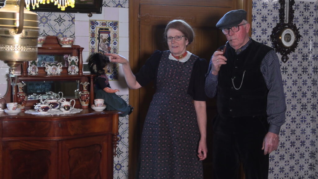 Dit is onze mooie kamer: De Heerd. In onze mooie kamer kun je zien dat we goed hebben geboerd. We hebben mooie en dure spullen gekocht en geërfd. Eigenlijk komen we niet zo heel veel op de Heerd. Onze spullen moeten mooi blijven. We gebruiken deze kamer alleen bij bijzondere familiegebeurtenissen, zoals huwelijk, geboorte en overlijden. Ook op zondag zingen we wel bij het orgel. We zitten hier ook als de dominee op visite komt.
