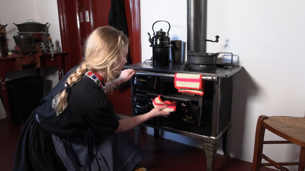 Hier in het washok werd ook wel gekookt. Daarvoor gebruikte men het kolenfornuis met erop een koffiebrander en een zakketel.